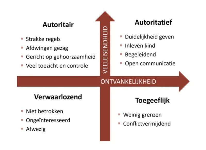 De autoritatieve opvoedingsstijl wordt gekenmerkt door een balans tussen hoge verwachtingen, emotionele ondersteuning en het aanmoedigen van zelfstandigheid (Baumrind, 1991). Ouders bieden duidelijke regels en consistentie, maar staan open voor dialoog en respecteren de behoeften van het kind.